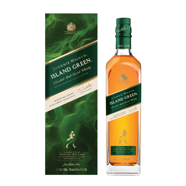 Johnnie Walker Island Green is a blended malt Scotch whisky that is a smoky variation of the classic Johnnie Walker Green Label. It contains a higher proportion of malt whisky from Caol Ila, an Islay distillery known for its peaty character. The blend also includes whisky from Clynelish, Glenkinchie and Cardhu. It is bottled at 43% ABV and has no age statement.